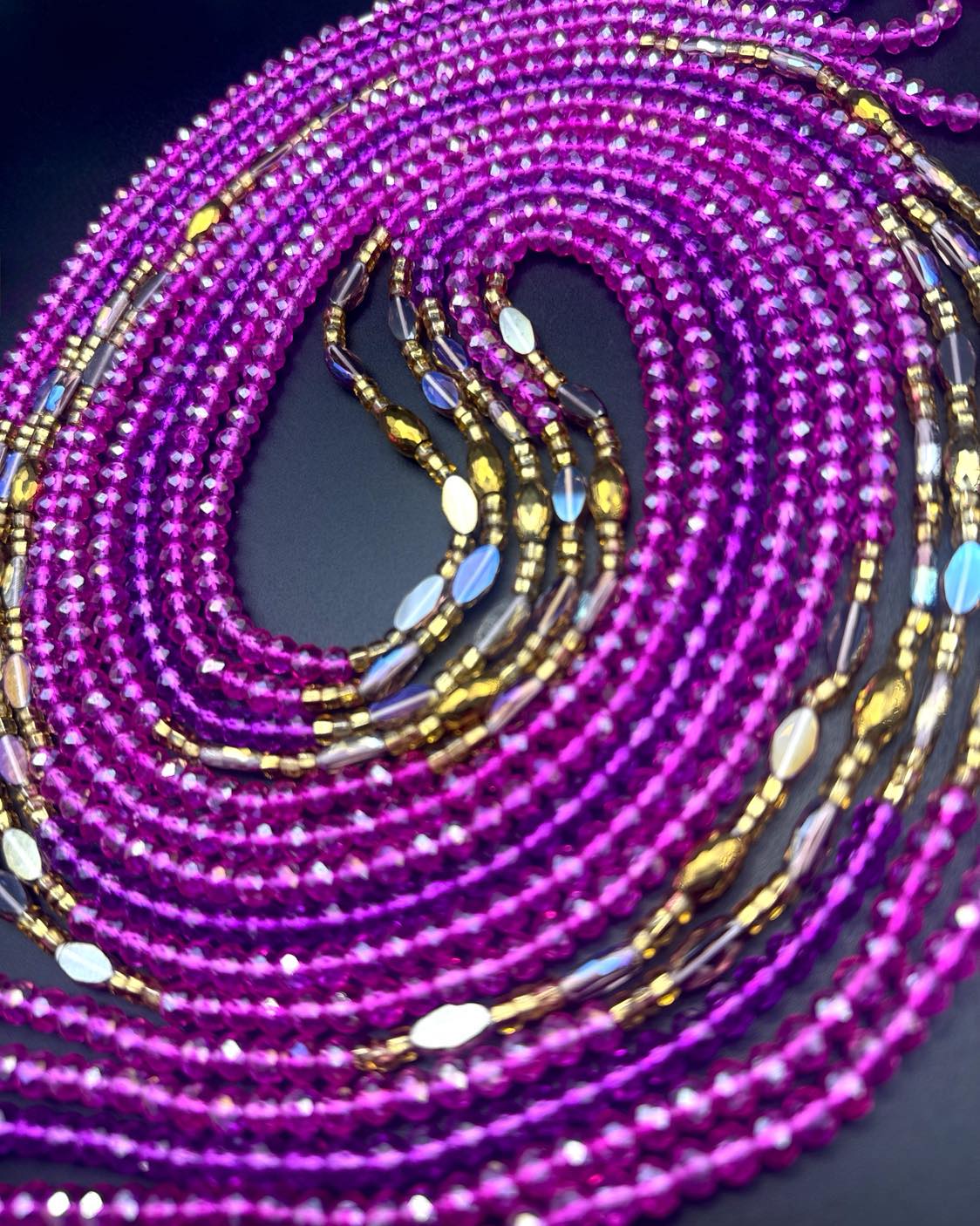 Sugar Spell is a spell in motion—soft, sweet, and full of quiet power. Made with shimmering pink beads, warm gold, and iridescent accents, this strand holds joy, beauty, and the kind of energy that lingers.